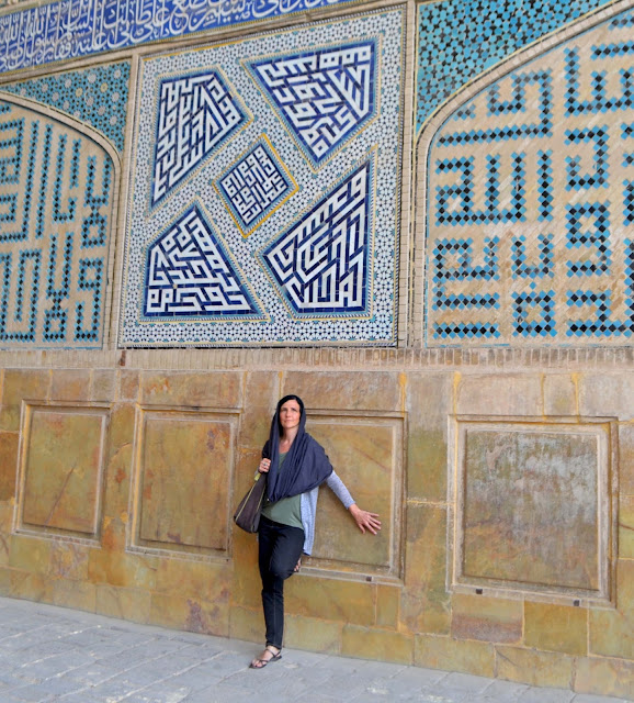 Kako se obući u poseti Iranu – dugi rukavi i nogavice, i marama koja pokriva kosu i deo vrata (Isfahan, Masjed-e Jāmé – Saborna džamija)