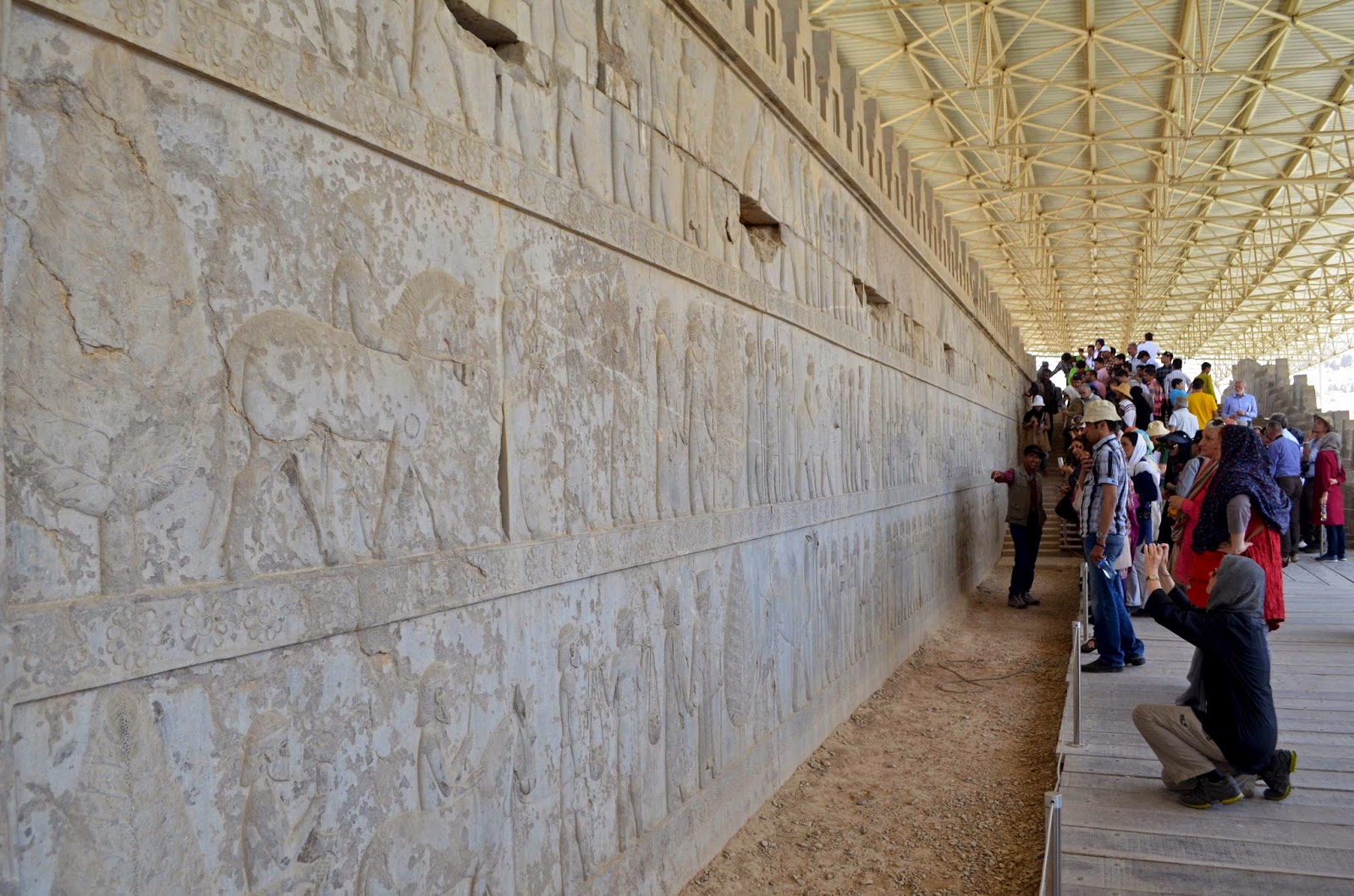 Autoputem iz Širaza ka severu, nakon 60 km vožnje stigli smo do odvajanja za najčuvenije arheološko nalazište Irana i jedno od najpoznatijih na svetu, Persepolisa, dela UNESCO-ve svetske kulturne baštine. Iranci ga još nazivaju i „Džamšidov tron“ (Takht-e Jamshid), prema imenu prvog, mitskog cara Persije. Persepolis, jedna od tri prestonice antičke Persije – ona najglamuroznija, gde su ahemendski carevi pravili zabave koje su trajale i po tri meseca, skoro do detalja su opisane u najvažnijoj istorijskoj knjizi antičkog sveta – Starom zavetu, delu Biblije. Počev od menija jela i pića, načina proslave, ali i toga kako je sama palata u Persepolisu građena – koji (osvojeni) narodi su učestvovali u tome, ko su bile zanatlije i odakle je stizao materijal (kedrovina iz Libana, mermer iz Male Azije), kako su izgledale prostorije, nameštaj, čak zavese u njima.