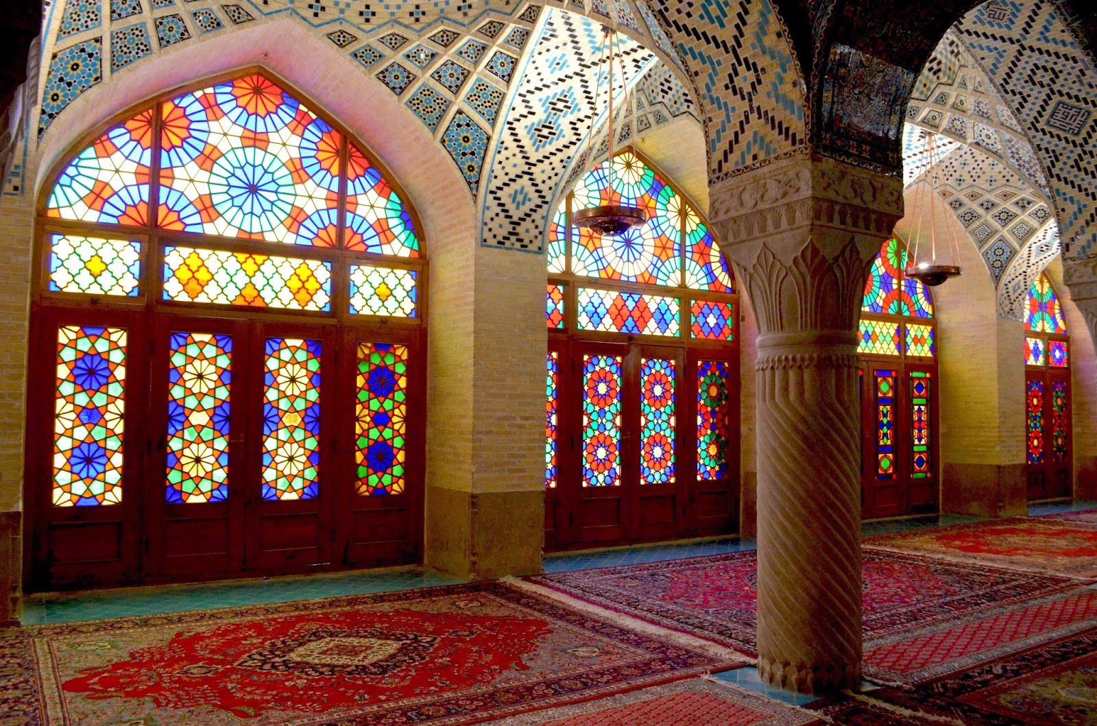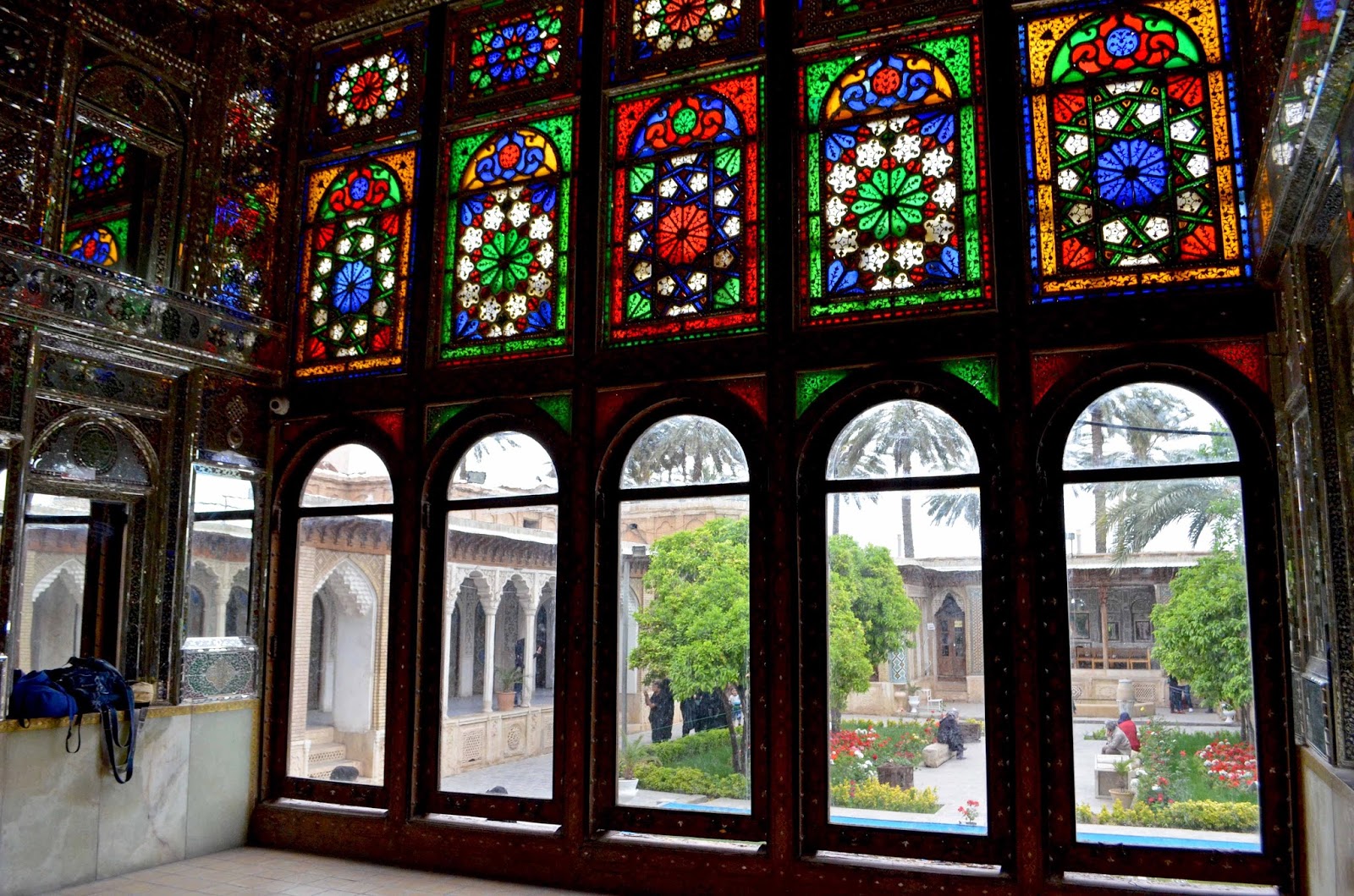 Osim bašti, u Širazu smo obišli čuveni pokriveni Bazar-e Vakil, jedan od četiri najbolja u Iranu, čiji se glavni ulaz nalazi kraj džamije Masđed-e Vakil (Masjed-e Vakil), u neposrednoj okolini istoimenog, jednog od tri najlepša stara hamama u Iranu (Hammam-e Vakil). U hamamu se danas nalazi mali muzej voštanih figura ljudi u javnom kupatilu, koji su odeveni shodno njihovim zanimanjima, i gde je prikazan nekadašnji život hamama – osim masaže i kupanja, muškarci iz Širaza ovde su obavljali operacije zuba i koristili usluge brice. Nedaleko od bazara, najfotografisaniju džamiju Irana Masđed-e Nasir-e Molk (Masjed-e Nasir-e Molk), u rano jutro kada zraci sunca probijaju kroz raznobojne geometrijske vitraže na prozorima posećuju mnogi. Kao tipični detalj persijskih vila i džamija, boje i šare ovih vitraža ogledaju se u šarenim persijskim tepisima na podu, i međusobno stvaraju nove, nestvarno blistave šare.
