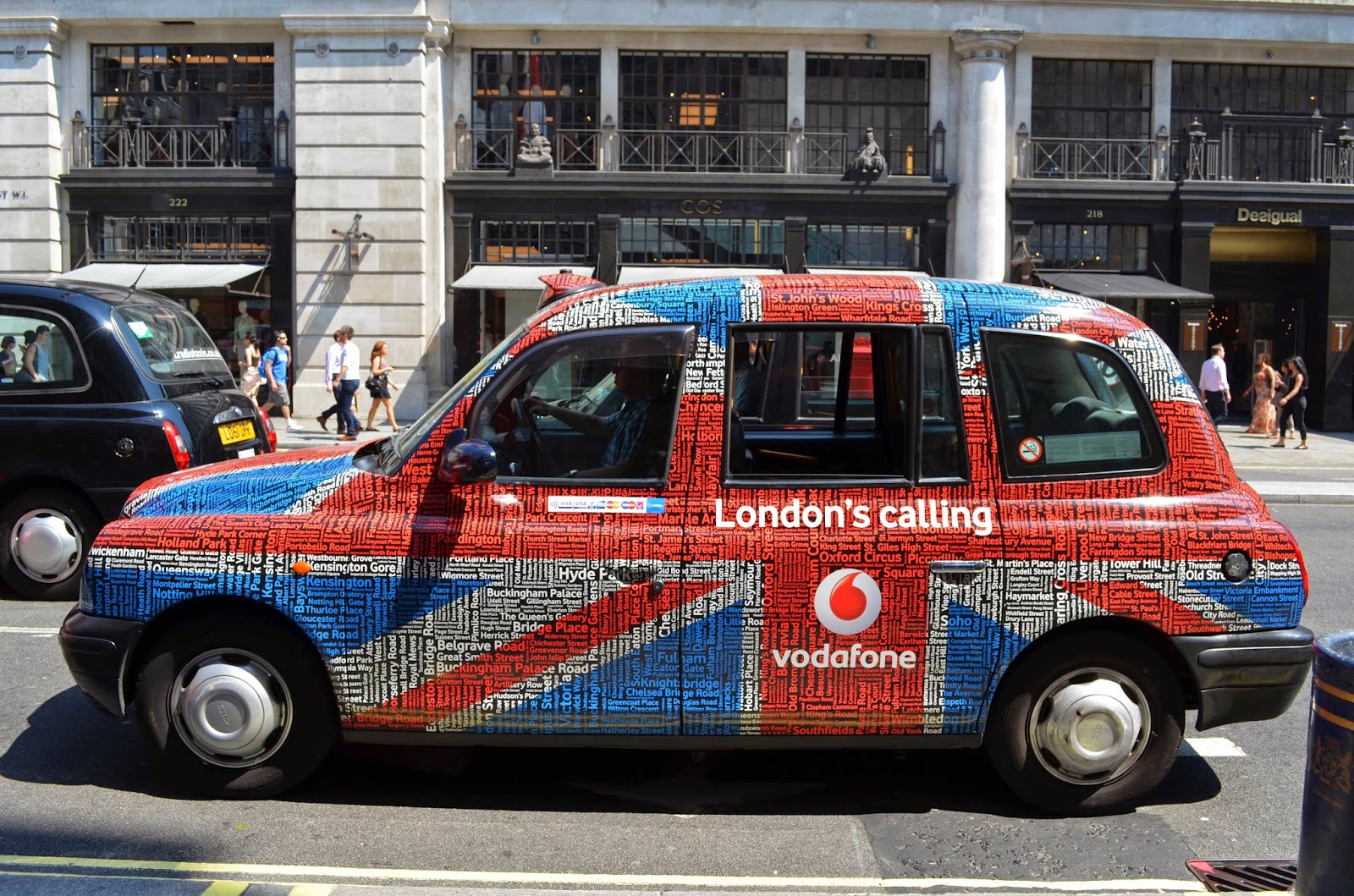 London cab, londonski taksi koji je umesto u nekada obaveznoj, crnoj boji, obojen u obličju britanske zastave © Ivana Dukčević